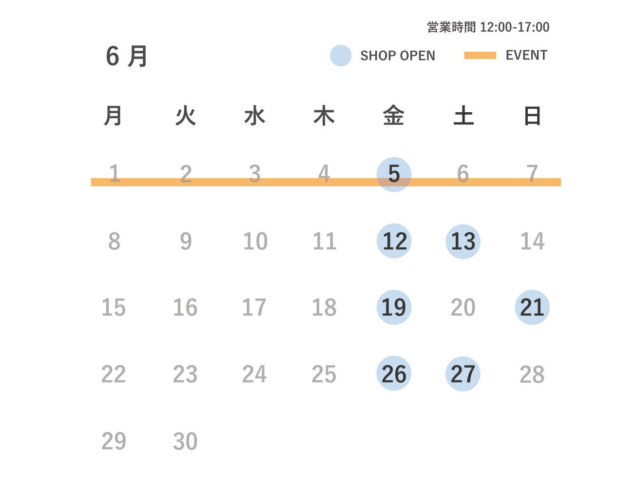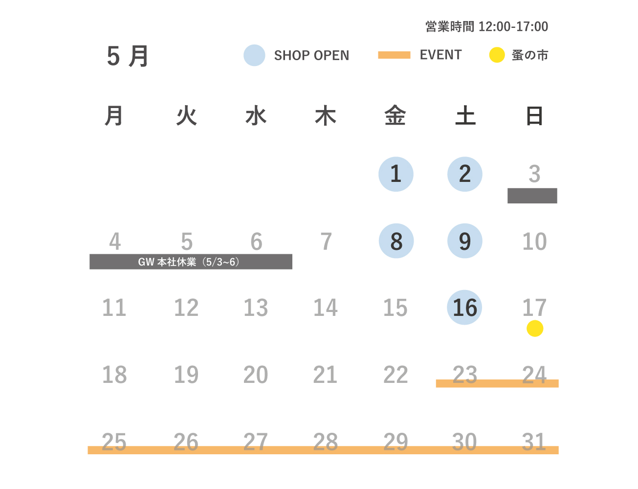 営業日とイベント情報をお知らせいたします。